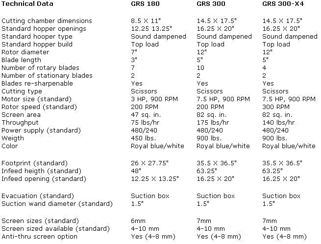 GRS 300, 7.5 HP, 14.5" X 17.5" cutting chamber |