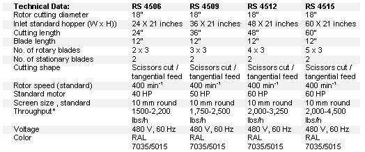 RS 4500 Series Mid-Heavy Duty Central Granulators