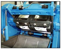 Shown is a standard segmented (no stagger set on this unit) rotor of a RS 4506 with a 5-gallon pale. The aggressive infeed of the RS 4500 Series granulator allows for very effective grabbing and granulating of bulky items. |